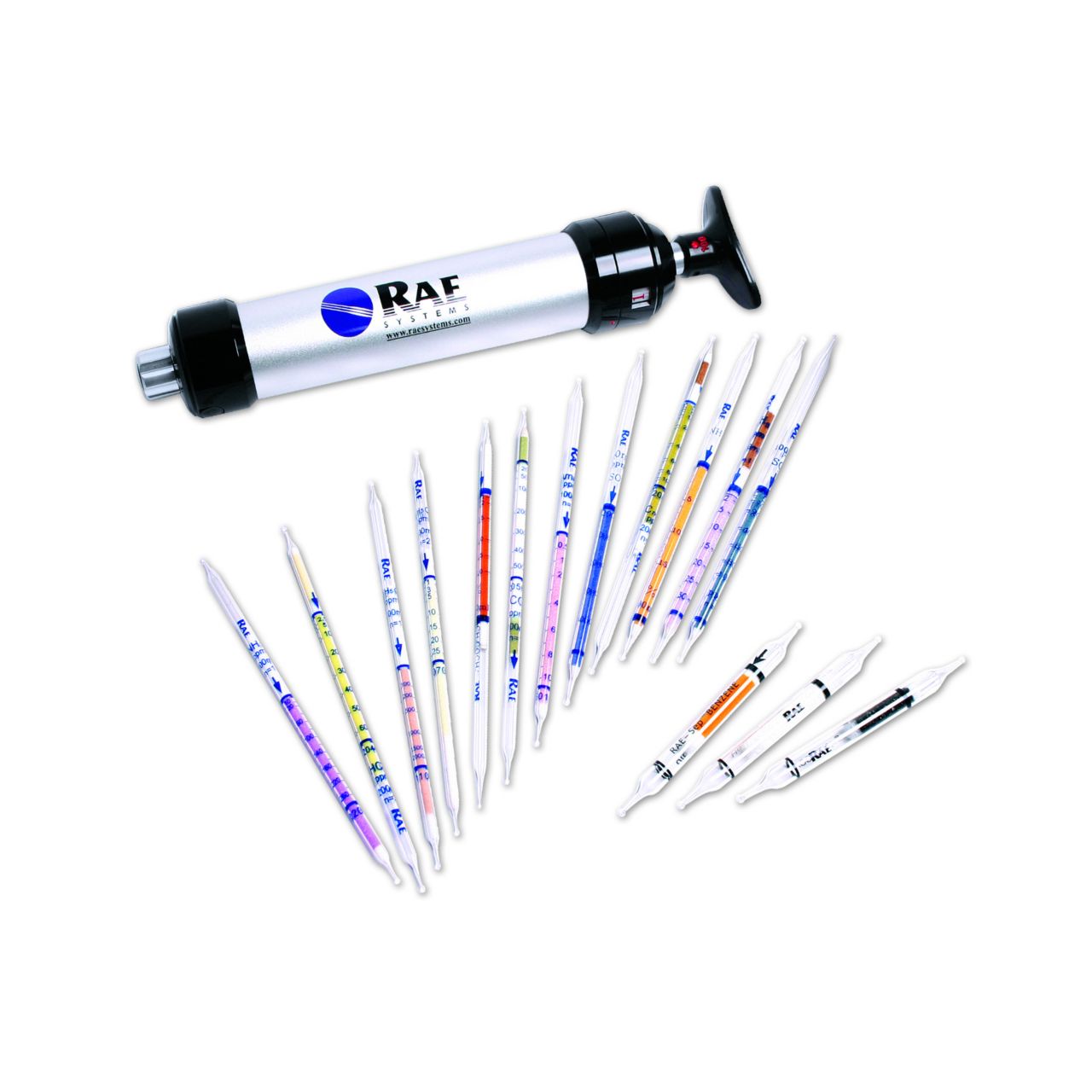 ปั๊มและหลอดเก็บตัวอย่างอากาศแบบมือถือ อ่านค่าได้ทันที มีหลอดตรวจจับลก๊าซและไอระเหยได้มากกว่า 300 ชนิด หลอดใช้ครั้งเดียวเปลี่ยนสีตามความเข้มข้นของก๊าซที่มีอยู่ ไม่จำเป็นต้องปรับเทียบ